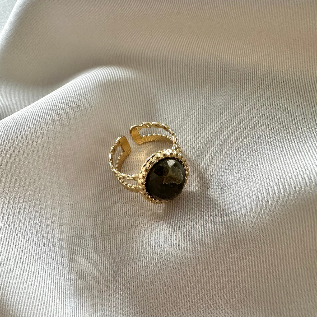 Este anillo con detalle en marrón está diseñado para darle un toque cálido y elegante a la imprescindible tendencia de joyas doradas. Atemporal, versátil y garantizado para realzar cualquier conjunto.