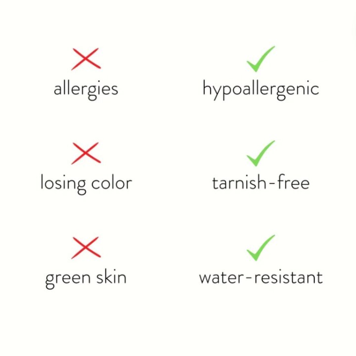 Fabricado en acero inoxidable impermeable, ya no tendrás que preocuparte por la decoloración ni el deslustre de tus joyas.