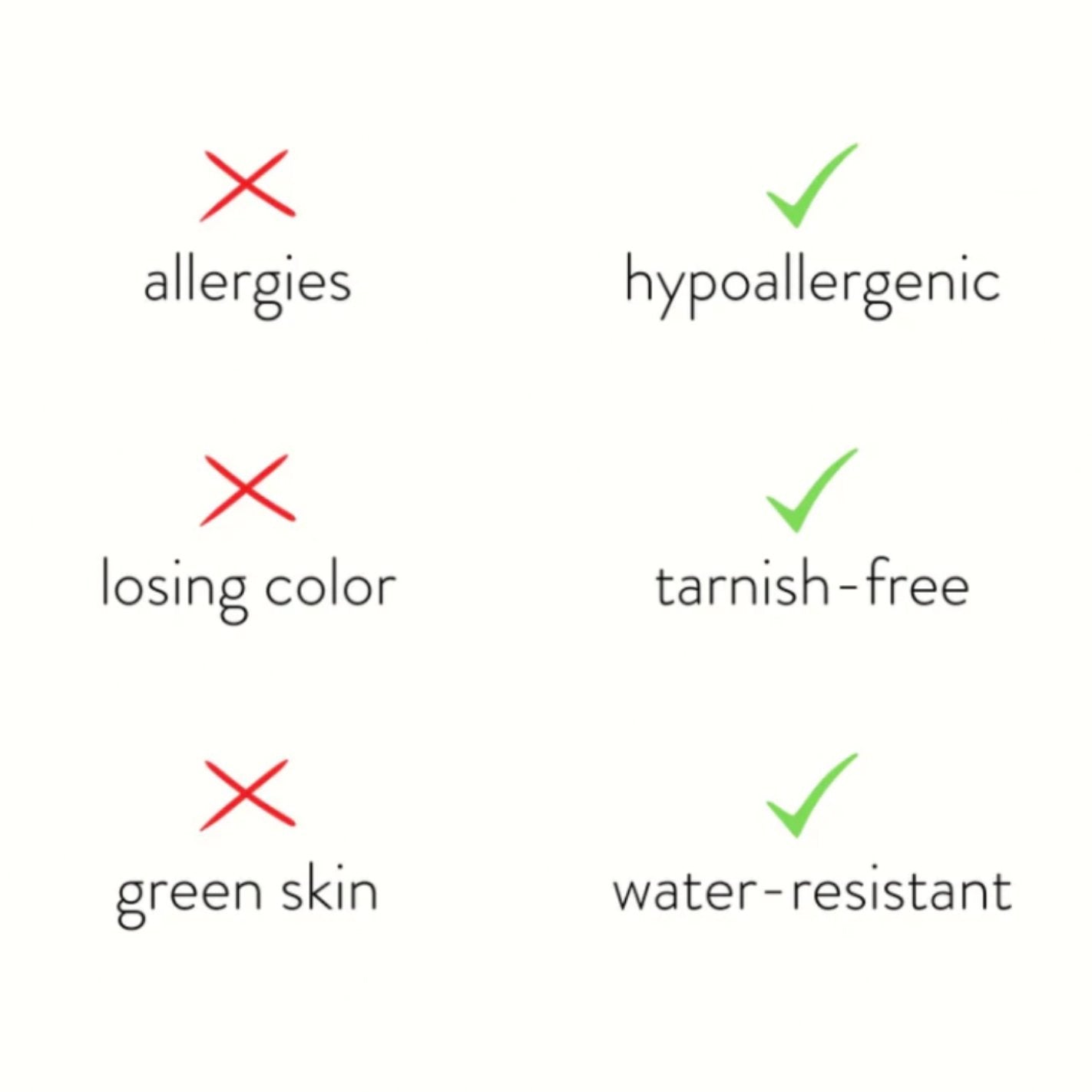 Fabricados en acero inoxidable impermeable, ¡nunca más tendrás que preocuparte por la decoloración o el deslustre de tus joyas!