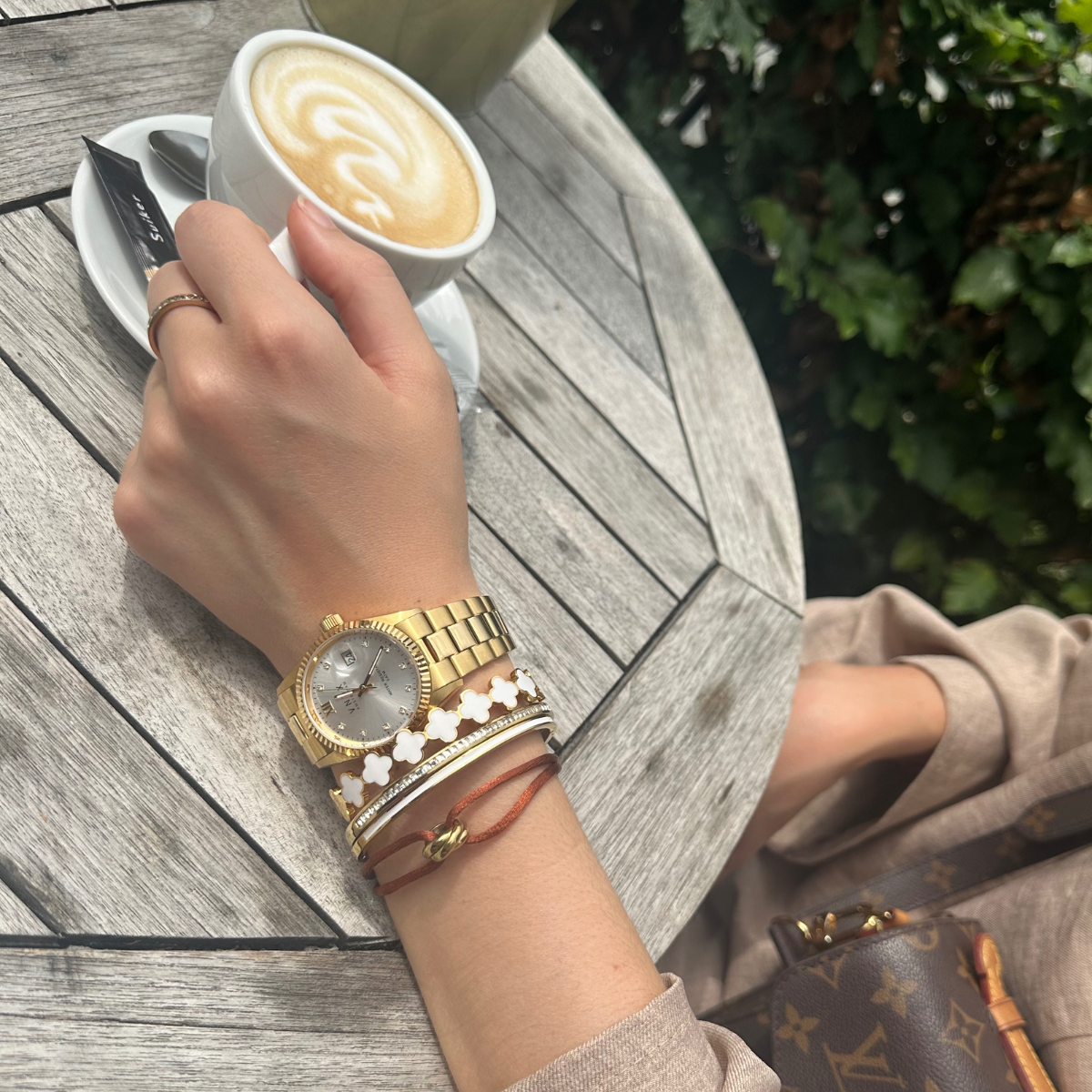 La pulsera Coco en dorado y blanco es un diseño delicado y moderno que aporta frescura y estilo a cualquier look. Su combinación de tonos la convierte en una pieza única, versátil y fácil de llevar tanto en el día a día como en ocasiones especiales.